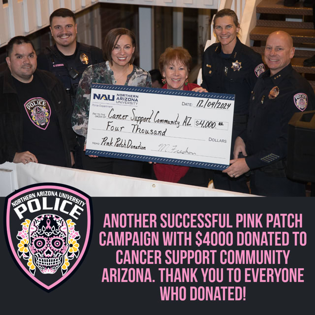 In 2018, then-Chief Kelli Smith brought the Pink Patch Project to the Northern Arizona University Police Department. This nationwide initiative raises awareness about breast cancer, a cause close to the hearts of Chief Smith and several of our officers who have been personally impacted by this disease.